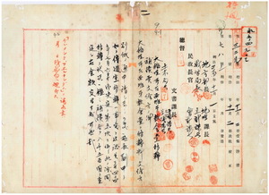 二 台北庁長井村大吉ヨリ明治四一年・四二年度事業ニ属スル大稲花并台北城内市区改正道路敷ニ関シ売渡不承諾或ハ所在不明或ハ相続者曠乏等ニヨリ任意ノ買収手続キヲ為シ得ヘキ見込ナキ者ニ付キ明治三四年五月律令第三号台湾土地収集規則ニ拠リ処分方稟申ニ対シ大稲花所在ノ西班牙天主堂及ヒ住宅伝道室其他ノ物件ヲ市区改正道路敷地トシテ同土地収用規則ニ依リ収集スルコトヲ指定シ同庁大加蚋堡大稲花新店尾街ノ西班牙教会ニ付テハ同天主堂代理人「ケレメンテ・フェルナンデス」ヘ移転料四万円ヲ支給シテ移転サセルコトニ関スル件