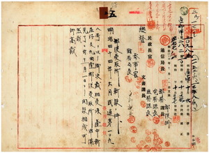 五 明治四四年一一月一日ヨリ台中庁藍興堡台中街ニ新庄仔郵便受取所及ヒ台南庁小竹上里九曲堂庄ニ九曲堂郵便受取所ヲ新設ノ件(告示第一七五号)