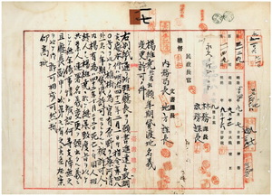 一七 彰化庁二林上堡渓湖庄ノ楊有為ト同堡西勢厝庄土名西勢厝ノ蔡河清ヨリ出願ノ彰化庁二林上堡西勢厝庄土名西勢厝ノ官有原野ヲ植樹ノ為メ年期借地ニ付キ許可(指令第四八〇号)ノ件並ニ楊有為ノ死亡ニ付キ相続人楊維堯ヘノ名義変更(住所名彰化庁より対中庁に変更)願許可ノ件(指令第四六九六号)