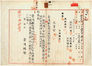 二一 近来内地本島間ノ交通頻繁ヲ加ヘ移入獣類増加シ獣疫病毒ヲモ移入スルノ虞アルヲ以テ之ヲ予防センガ為メ台湾獣疫予防規則中改正ノ件(律令第四号)