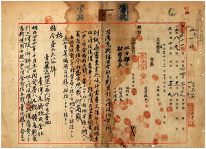 一 台北庁大加蚋堡台北城内小南門街台湾瓦斯株式会社取締役社長秋山義一ヨリ出願ノ台北庁管内台北城内・大稲花・崔崢ノ瓦斯需用各戸ニ対スル瓦斯管引込埋設許可ノ件(指令第六九八二号)
