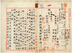 一六 明治三九年六月三〇日府令第四五号中電話交換料ノ部「西螺」ノ次ニ后里庄ヲ追加(府令第六号)並ニ明治三九年七月告示第五一号特設電話事務取扱ヲ為ス郵便局所ノ名称並ニ其ノ位置及指定区域ニ台中庁苗栗三堡后里庄及ヒ圳藔庄ヲ追加(告示第一〇号)ノ件〈民通第一五九号〉