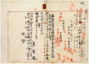 三 嘉義庁長津田毅一ヨリ稟申ノ明治製糖株式会社所有ノ嘉義庁大■(木+康)榔西堡蒜頭庄ノ土地建物ヲ蒜頭警察官吏派出所トシテ無料使用方認可ノ件(指令第二二三八号)