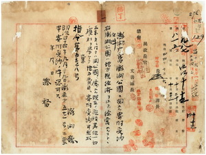 一 澎湖公園管理者澎湖庁長横山虎次ヨリ出願ノ澎湖庁東西澳媽宮街北町ノ澎湖公園ニ属スル施設其ノ他一切ノ権利ヲ地方税経済経営ノ為メ地方費区ヘ寄附願受納方認可ノ件(指令第五三七八号)