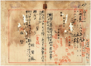 七 桃園庁龍潭陂区庄民総代龍潭陂区長古地林・咸菜硼区庄民総代咸菜硼区長謝全蘭・石崗仔区庄民総代石崗仔区長陳遠芳・銅鑼圏区庄民総代銅鑼圏区長林栄芳・三坑仔区庄民総代三坑仔区長李盖発ヨリ出願ノ龍潭陂咸菜硼間道路工事労力五万八四三四人分寄附願並ニ龍潭陂咸菜硼間道路敷地ノ為メ桃園庁桃澗堡銅鑼圏庄ノ土地ヲ蕭星奎・蕭維山・頼娘連・頼石慶・李金周・李金隆・蕭新巽・梁陳安・陳竹英・陳竹秀・陳竹興・黄日英・李承煥・邱阿俊・邱阿田・邱阿閣ヨリ、桃園庁竹北二堡摘仔溝庄ノ土地ヲ徐光亮・徐阿慶・徐阿亮・徐阿景・陳立伝ヨリ、桃園庁竹