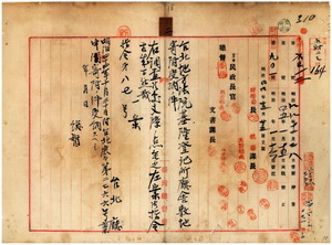 二 台北庁基隆堡田■(艹+寮)港庄ノ建物敷地ヲ台北地方法院基隆登記所庁舎敷地トシテ台湾建物株式会社代表者社長木下新三郎ヨリ寄附アリタルニヨリ受納方台北庁長井村大吉ヨリノ伺ニ付キ認可ノ件(指令第八七号)
