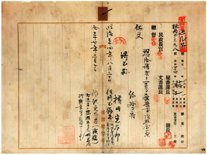 一 元台湾総督府書記横田寛太郎ヘ麻剌里亜ニ罹リ職ニ堪ヘサル旨ヲ以テ退官ニ付キ恩給証書下付及同証書送付ノ件