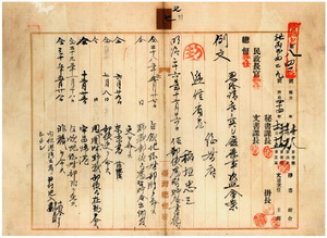 七 元台湾総督府通信属稲垣忠三ヘ麻刺利亜ニ罹リ職ニ堪ヘサル旨ヲ以テ退官ニ付キ恩給証書下付及同証書送付ノ件