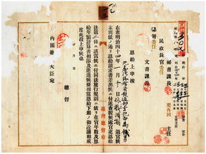 中島鐵男恩給下賜上申及同證書送付