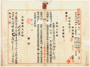 三 元台湾総督府通信属浅井秀雄ヘ恩給証書下付及同証書送付ノ件[恩求請求書および診断書なし]