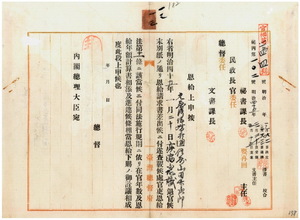 山田竹次郎恩給下賜上申及同證書送付