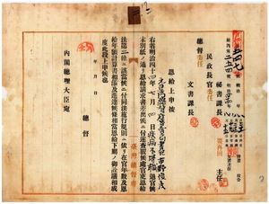 二 元台湾総督府専売局書記市野俊彦ヨリノ恩給請求ハ官吏恩給法ニ依リ恩給ヲ受クヘキ権利ナキモノト裁定ノ旨通知ノ件