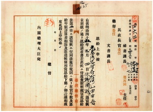 四 元台湾総督府技師山田申吾ヘ休職満期退官ニ付キ恩給証書下付及同証書送付ノ件