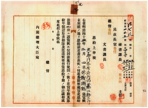 藤江藤太郎恩給下賜上申及同證書送付