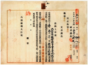 橋本五郎恩給下賜上申及同證書送付