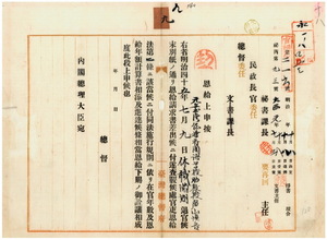 九 元台湾総督府国語学校助教授兼同舎監台湾総督府編修書記畠山慎吾ヘ恩給証書下付及同証書送付ノ件