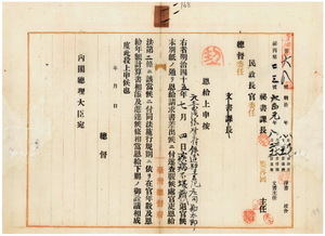 一一 元台湾総督府鉄道部書記庄司勘太郎ヘ恩給証書下付及同証書送付ノ件