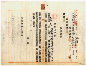 伊東竹二恩給下賜上申及同證書送付