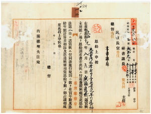 早川直次郎恩給下賜上申及同證書送付