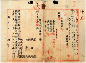 三 明治四二年一二月訓令第二〇八号台湾総督府報告例別冊中法務部主管ニ係ル記述及ヒ統計ノ部改正ノ件(訓令第九四号)