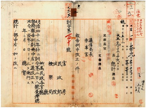 五 明治四二年一二月訓令第二〇八号台湾総督府報告例別冊中漂流物及沈没品ニ係ル統計ノ部改正ノ件(訓令第一一〇号)