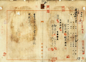 五 第四号 台北庁・嘉義庁ノ庁令供閲ノ件[インク流れのため供閲された案件は判読不能]