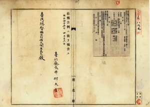 八九 第五二号 台北庁管内ノ興直堡一円・三貂堡一円・石碇堡ノ内保長坑庄・鵠々崙庄・姜仔椙庄・友蚋庄・瑪陵坑庄・十三け庄・石嵐仔庄・横科庄・港口庄・鶯歌石庄・茄苳脚庄ニ地押調査施行ノ件