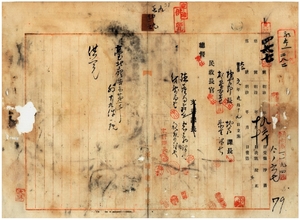 一三 第五号 台北庁文山堡景尾街高唱・大加蚋堡大稲花建成街後藤久蔵・同堡崔崢後菜園街載謀ノ物品販売行商鑑札亡失ニ付キ該鑑札ヲ無効トス