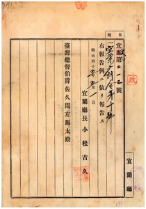 宜蘭廳訓令第十號判任文官通譯兼堂者銓衡手續ヲ定