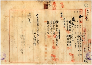 九一 宜蘭庁・桃園庁・嘉義庁・花蓮港庁・澎湖庁ノ訓令供閲ノ件[インク流れのため供閲された案件は判読不能]
