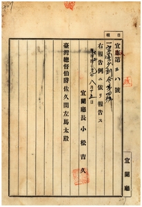 一〇一 第四号 明治四〇年六月宜蘭庁訓令第一八号台湾地方税事務ニ関スル通知規程中改正ノ件