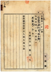 宜蘭廳訓令第九號四十三年訓令第二十九號支廳長委任事項中追加