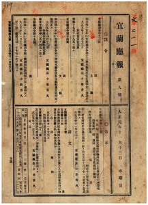 一一三 第一五号 明治四三年二月宜蘭庁訓令第一号庁報取扱規程中改正ノ件