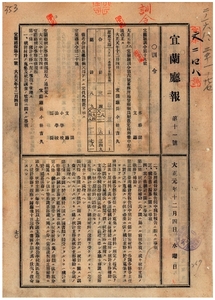 一一七 第一九号 大正元年八月宜蘭庁訓令第六号蕃務所属警察職員配置定員別冊中改正ノ件