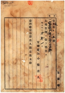 宜蘭廳告示第二十三號阿片煙膏購買吸食特許鑑札同通帳亡失ノ旨關係廳通知