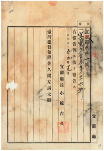 宜蘭廳告示第二十六號煙草小賣營業鑑札紛失屆(及煙草小賣行商營業鑑札)