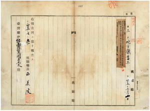 一四九 第六〇号 明治三四年一〇月台北県告示第一五三号認定公共課嘩二甲九嘩灌漑区域中「中庄土名中庄街ノ内」十二股嘩灌漑区域中「坡内坑庄ノ内」ヲ追加ス