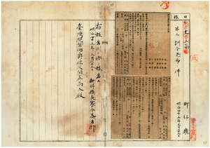 三五 第一六号 明治四三年三月新竹庁訓令第九号台湾総督府報告例ニ依ル報告手続別冊中改正ノ件