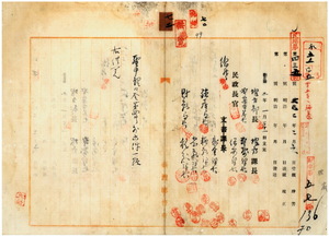七二 台中庁・台南庁・花蓮港庁・澎湖庁ノ庁令供閲ノ件[インク流れのため供閲された案件は判読不能]
