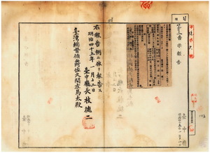 一〇六 第四号 台南庁管内ノ支那形船金義興ノ潘国祥ト新竹庁管内ノ支那形船順興号ノ鄭蓬ハ船鑑札流失ニ付キ無効ニ帰シタル旨台南庁及新竹庁ノ両庁ヨリ通知ノ件