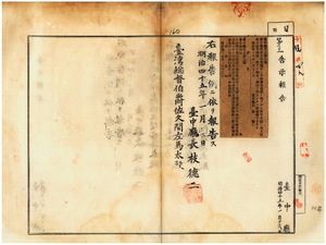 臺中廳告示第六號新竹廳梀東上堡罩蘭庄ニ牛疫蔓延ノ兆アルニ付牛羊族ノ出入等停止ノ通報