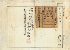 二二 第二二号 嘉義庁管内ニ疑似炭疽・牛疫・疑似牛疫発生及ヒ新竹庁管内ニ豚虎列拉発生ニ付キ両庁ヨリ通報ノ件