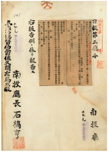 七六 第八号 明治三七年六月南投庁令第一八号銃砲火薬取締ニ関スル施行規則中改正ノ件