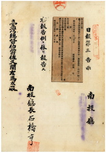 南投廳告示第三號五城堡魚池庄ノ豚疫終熄