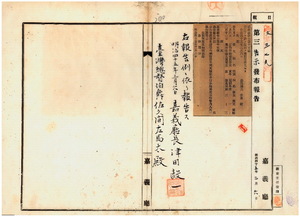 九七 第一五号 嘉義庁管内ノ打猫西堡旧南港庄ニ疑似牛疫発生及ヒ柴頭港堡大渓鮎庄ニ豚虎列剌発生ノ件