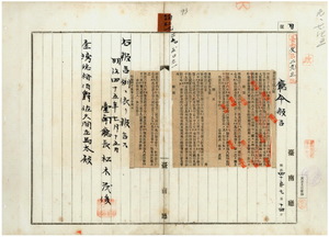 二九 第九号 明治三六年二月台南庁令第三号犬取締規則、明治三六年五月台南庁令第八号艀船営業取締規則、明治三六年一二月台南庁令第一七号山野火入取締規則、明治三七年六月台南庁令第七号銃砲火薬取締ニ関スル規程、明治三七年一〇月台南庁令第一四号街路取締規則、明治三九年四月台南庁令第七号本島内地及本島対岸船乗客ニ関スル件、明治四〇年一一月台南庁令第八号印刻営業取締規則施行細則ヲ全管内ニ施行ス、明治三六年一月鳳山庁令第二号及同年八月鳳山庁令第一一号明治三七年八月鳳山庁令第六号明治三九年五月鳳山庁令第一一号廃止並ニ明治