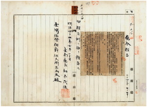 三二 第一二号 明治三七年一〇月台南庁令第一四号街路取締規則中附則第一項改正ノ件