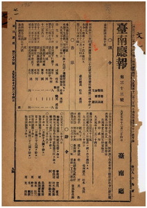 臺南廳訓令第十號四十三年支廳長委任事項第一項中改正