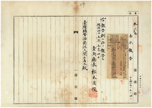 一一一 第三九号 台南庁観音内里様仔脚庄・姑婆椙庄小竹上里大樹脚庄ヲ牛疫流行地ト認メ獣疫予防規則第八条ニ依リ牛畜ノ出入並病毒伝播ノ虞アル物品ノ搬出入ヲ停止ス