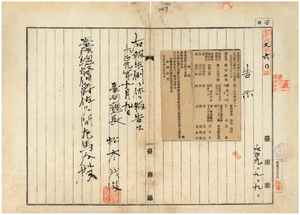 一四九 第一五号 台南庁台南市草花街ノ寺田亀太郎ハ呉服行商鑑札ヲ、台南市蕃薯崎街丁ノ段求才・段老五・段輝雲・段弐長ハ古器物修繕行商鑑札ヲ紛失ニ付キ両鑑札ヲ無効トス